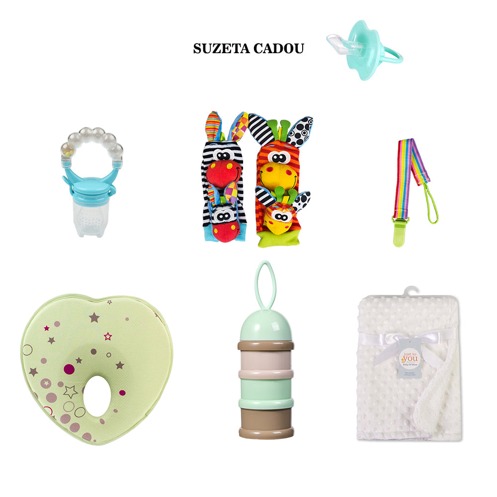 Pătuţul şi suzeta verde cadou: Un set adorabil ce completează perfect atmosfera de confort şi siguranţă din camera bebeluşului. Pătuţul este perfect pentru odihna micuţului, iar suzeta verde, un cadou simpatic, va deveni cu siguranţă un obiect de confort preferat.