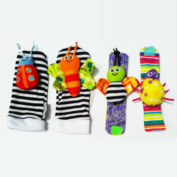 Șosete și brățări din bumbac cu zornăitoare ce vă ajută la dezoltarea simțurilor (văzului, auzului, tactil și cel al mișcărilor).